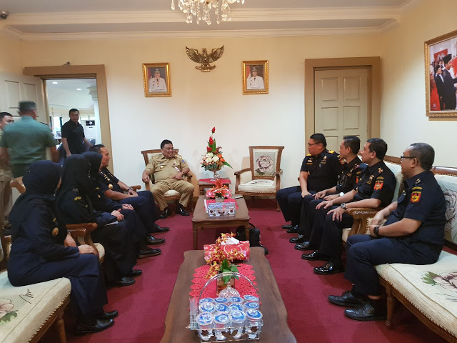 Sulut, sulutexpress.com-Gubernur Sulawesi Utara Olly Dondokambey SE menerima kunjungan Kakanwil Bea Cukai Sulbagtra Cerah Bangun bersama jajaran di ruang kerja gubernur, Selasa (17/10/2017) siang,