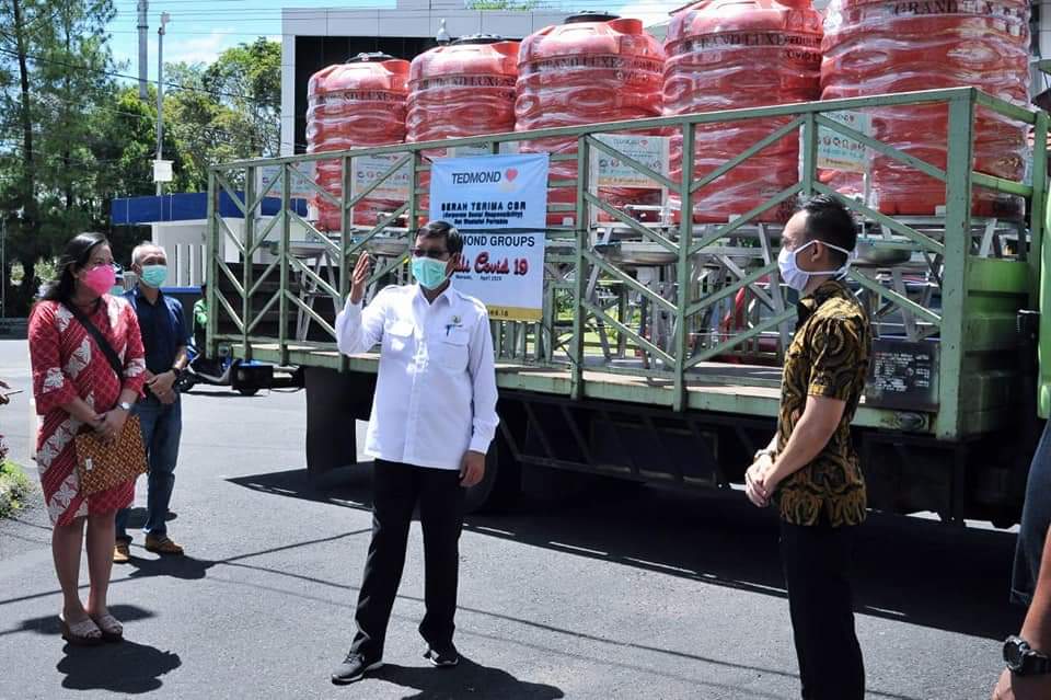 Walikota yang menerima langsung bantuan ini mengatakan, ini merupakan kesadaran dari masyarakat dan pihak swasta dalam menghadapi COVID-19 yang sedang mewabah di Kota Manado saat ini. Ketua Dewan Pengawas Apeksi ini, juga mengucapkan terimakasih kepada Tedmon Groups yang sudah membantu pemerintah dengan menyumbangkan 5 tong air bersih yang sudah dilengkapi dengan westafelnya.