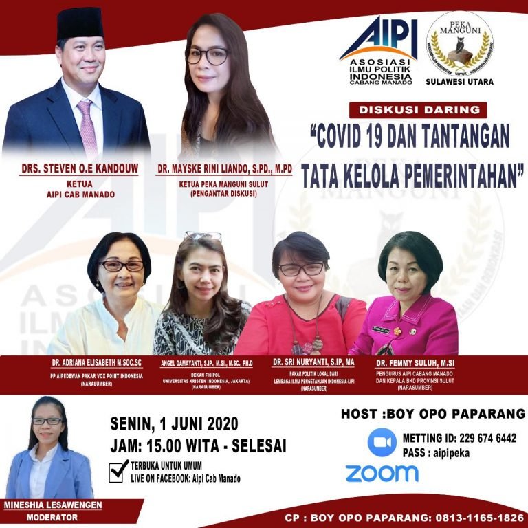 SULUT, Sulutexpress.com -Wakil Gubernur Sulut Drs Steven OE Kandouw sekaligus Ketua AIPI Manado akan membuka Webkusi dengan topik ‘Covid 19 dan Tantangan Tata Kelola Pemerintahan’ pada Senin (01/06/2020) mulai jam 15.00 Wita.