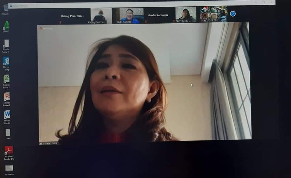 Ketua Panitia Manado Fiesta 2020, Coreta Kapojos mengikuti zoom meeting