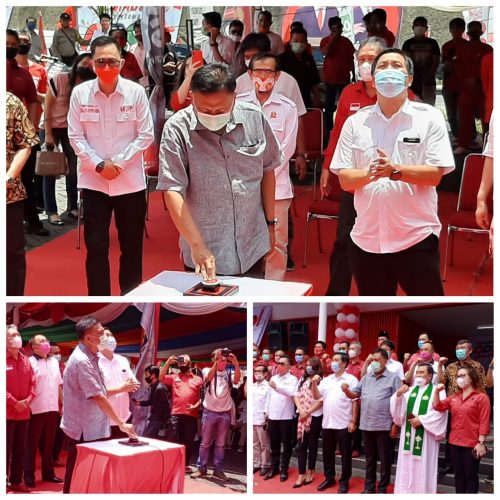 Kesempatan itu, Cagub Olly Dondokambey menekan tombol dan menggunting pita sebagai tanda Kantor Sekretariat Tim Kampanye OD-SK mulai resmi fungsikan.
