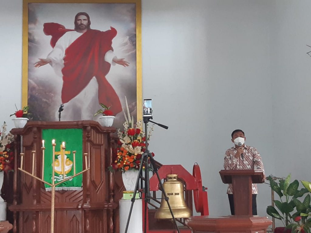 “Dalam suasana sukacita iman, saya mengajak segenap warga masyarakat umumnya serta warga Jemaat untuk tetap menjaga soliditas dalam rangka kelangsungan stabilitas ketentraman dan ketertiban masyarakat untuk menunjang pelaksanaan pilkada serentak Kepala Daerah Provinsi Sulut dan Kabupaten Minut, ditengah pandemi covid 19 agar tetap menerapkan protap penanganan covid dengan 4M yaitu Memakai masker Mencuci tangan, Menjauhi kerumunan dan Menjaga jarak,” imbau Pjs Bupati Clay Dondokambey sembari menambahkan Gereja dan Pemerintah harus bersinergi.