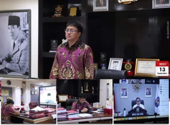 Manado, sulutexpress. Com-Senin (13/9/2021) Walikota Manado, Andrei Angouw, mengikuti kegiatan pembekalan Kepemimpinan Pemerintahan Dalam Negeri secara virtual di ruang Kerja Walikota.