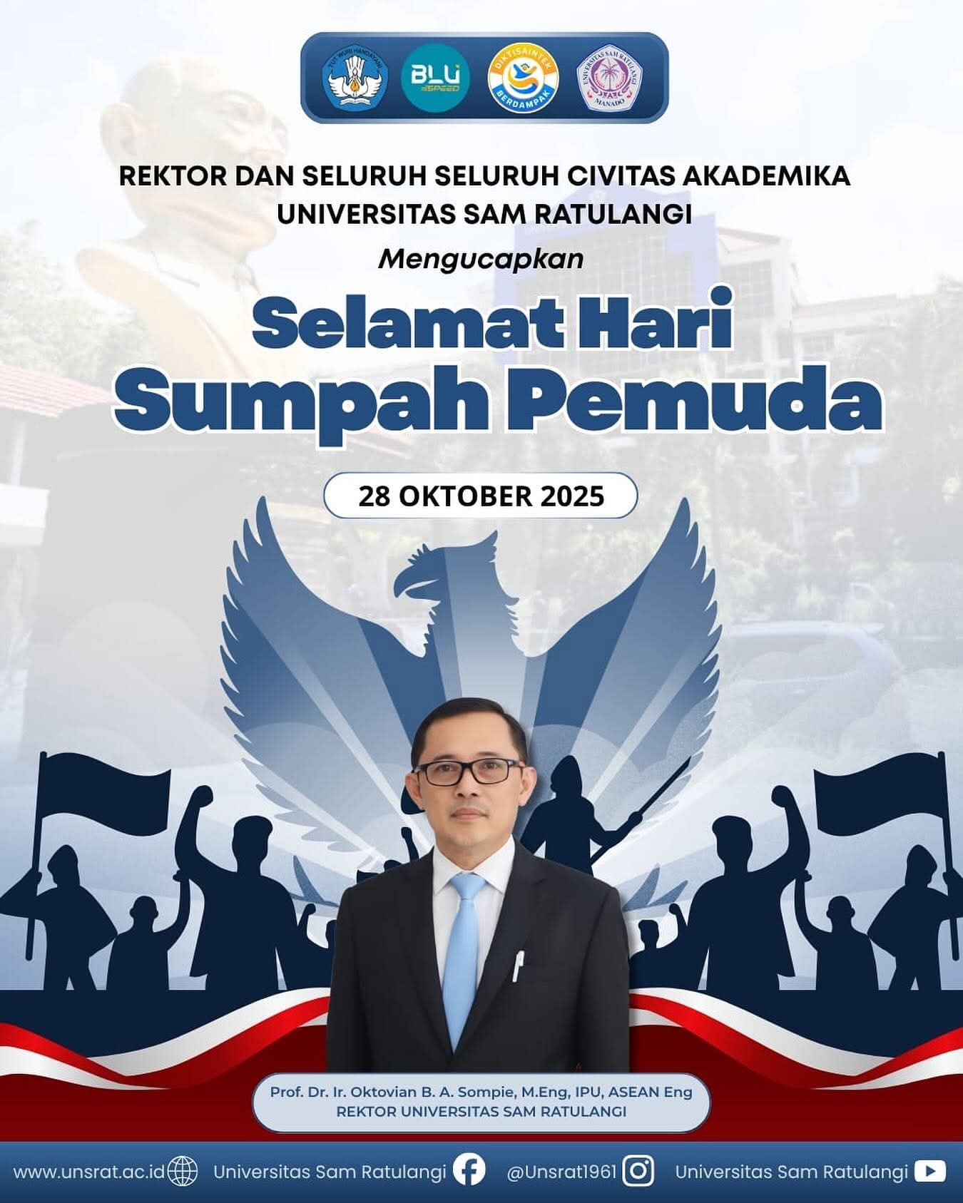 MANADO, sulutexpress.com– Suasana pagi di halaman Rektorat Universitas Sam Ratulangi (UNSRAT) Manado, Selasa (28/10/2025) tampak khidmat.