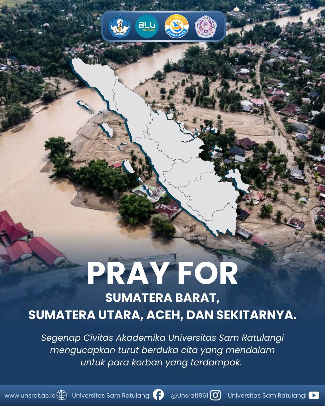 “Pray for Sumatra Barat, Sumatera Utara, Aceh dan sekitarnya. Segenap civitas akademika Universitas Sam Ratulangi mengucapkan turut berduka cita yang mendalam untuk para korban yang terdampak,” ujar Rektor Prof. Dr. Ir. Oktovian B.A. Sompie M.Eng. IPU. ASEAN Eng.
