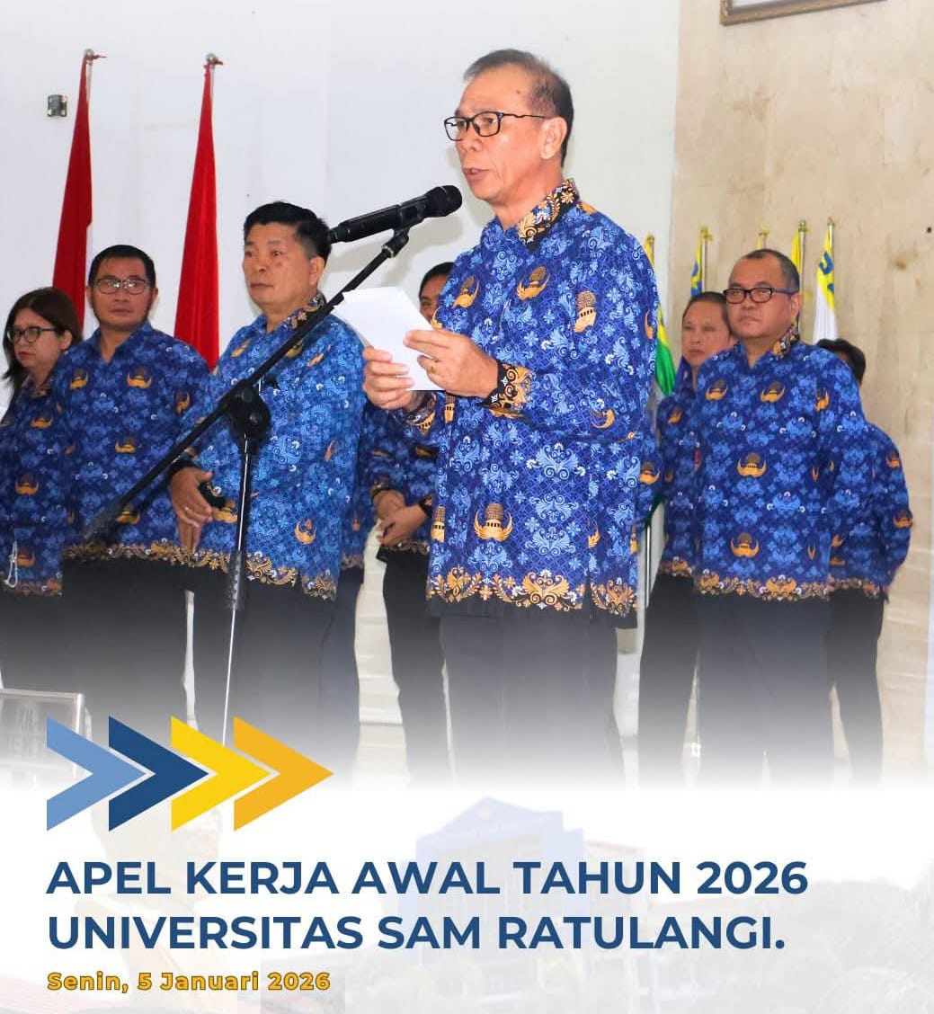 Manado, sulutexpress.com— Universitas Sam Ratulangi (UNSRAT) menggelar Apel Kerja perdana Tahun 2026 sebagai momentum awal untuk memperkuat komitmen seluruh sivitas akademika dalam menjalankan tugas dan tanggung jawab di tahun yang baru.